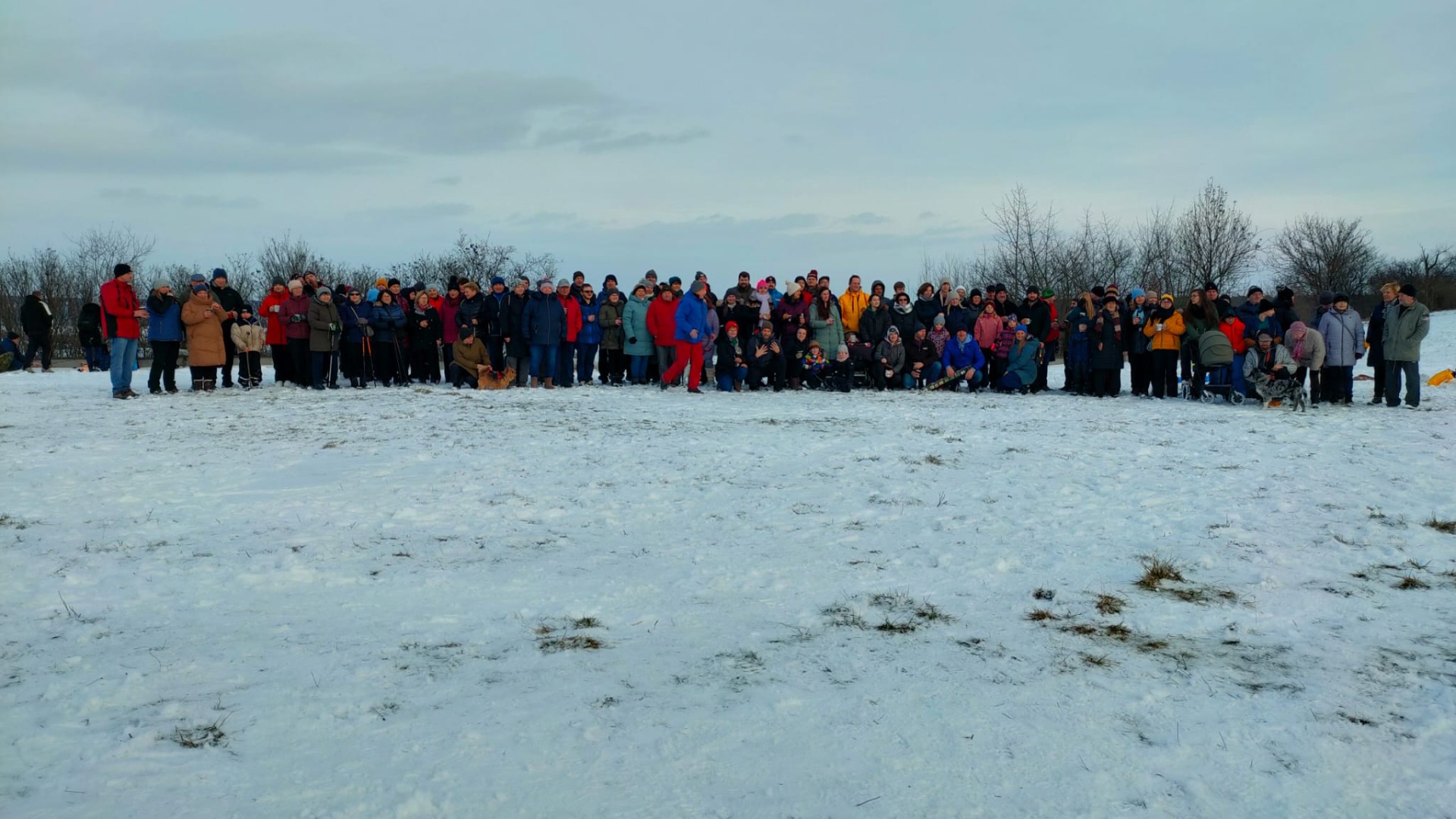 Ve 14 hodin se z mraků vylouplo sluníčko, příchozí se vzájemně zdravili, objímali a popřáli si vše dobré v novém roce.